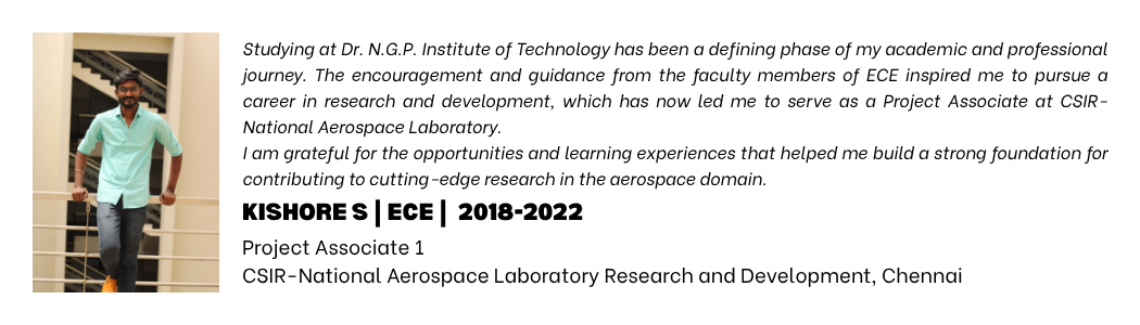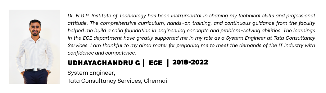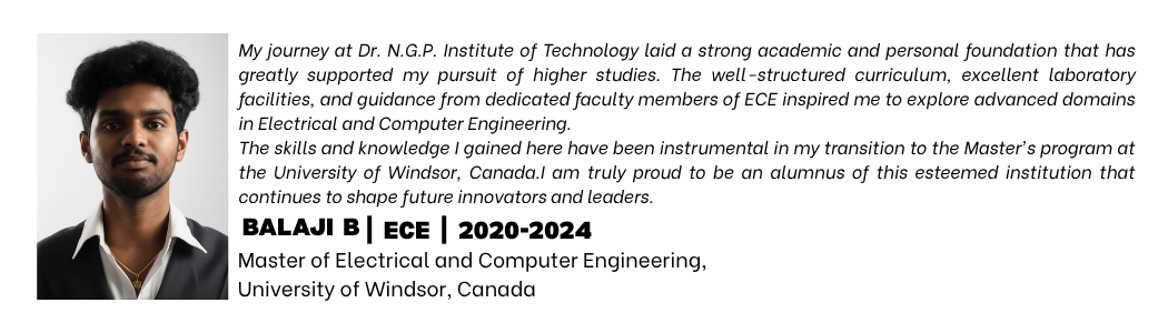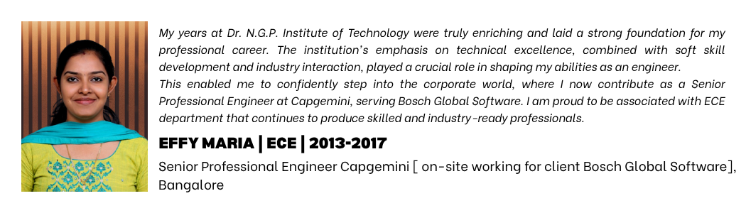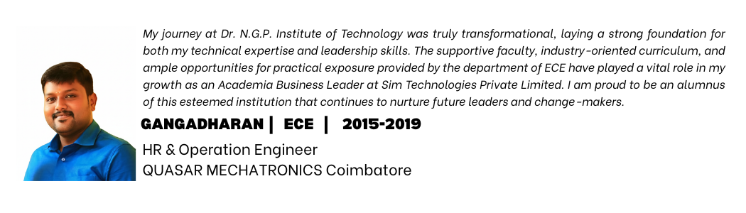 Listen to our alumni talk about their degree and life at Dr. NGP Institute of Technology, Coimbatore.
